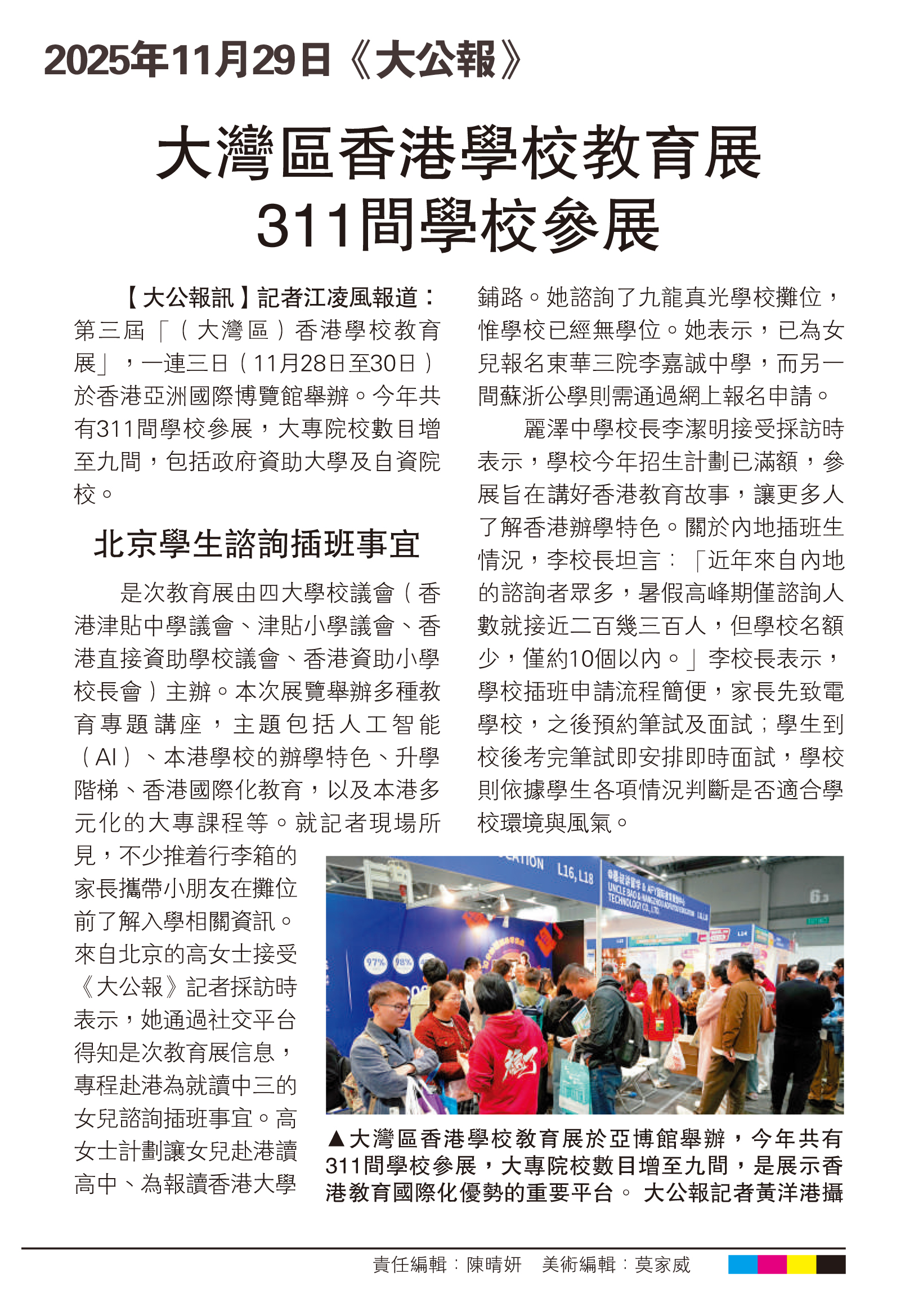 大灣區香港學校教育展 311間學校參展